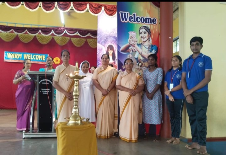 The Correspondent, Sr Maureen BS, and Sr Premlatha, the local Superior, warmly welcomed the new Headmistress, Sr Shanthi Flavia Menezes, along with Sr Celine Petra, teachers, and students.